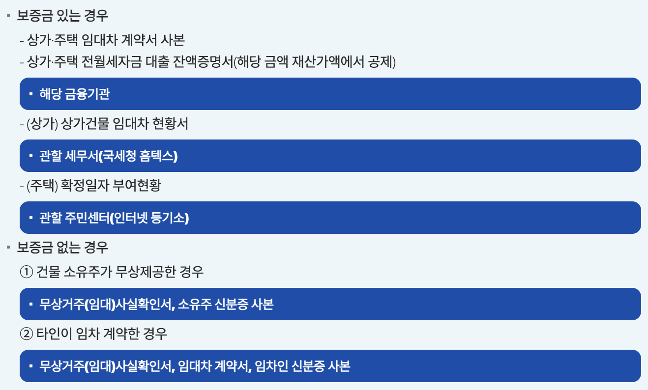 국가 유공자, 장애인, 한부모가정, 기초생활수급자, 차상위계층을 제외한 일체 서류